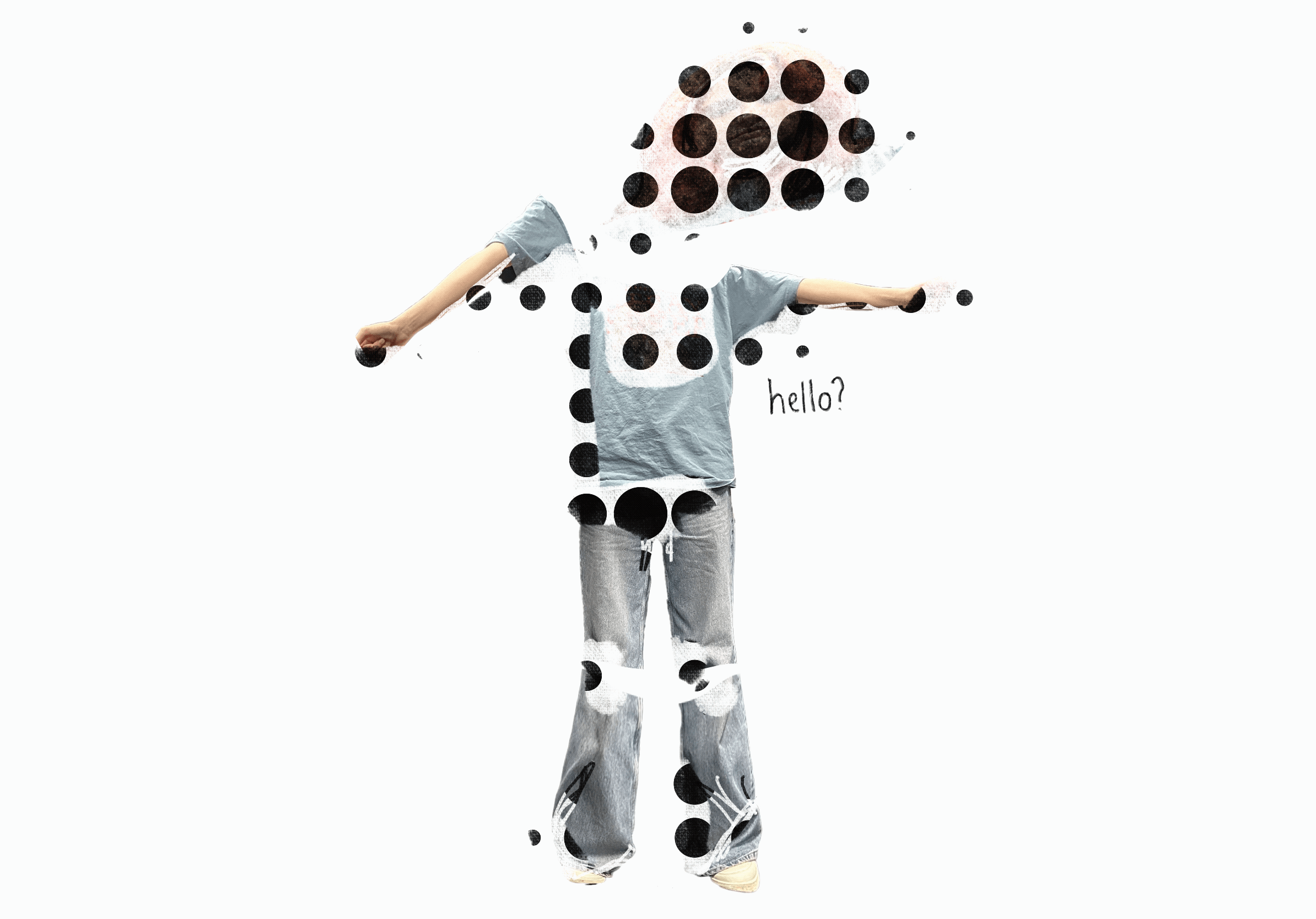 A distorted version of a familiar figure stares- the climbing circles on her face make it impossible to tell if it is directed at you...