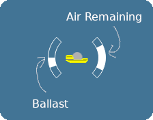Your submarine can be propelled left and right. You can dive and surface by adding and removing air to the ballast tank. This air is also your breathing air, so use this carefully.
